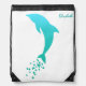 Turquoise Blue Jumping Dolphin With Bubbles cute Turquoise Blue dolphin silhouette preparing to jump from the water on gradient blue sea background