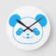 Blue Kawaii Panda Bear Round Clock