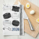 This Kitchen Conversions kitchen towel has blue Kitchen Conversions design with the full year 2026 Calendar in black printed on white background. All items are with a texture for old fashion print look. This kitchen towel has a great vintage feel for old fashion farmhouse theme kitchen.