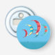Colorful kitesurfing / kiteboarding kites flying in the blue sky over the ocean themed button bottle opener.