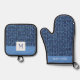 Blue Knit Pattern Oven Mitt & Pot Holder Set