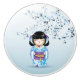 This cute ceramic knob features a kokeshi doll in a blue and purple kimono with cherry blossoms.