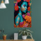 An image of a blue lady with spiral hair. This is an AI generated artwork with a floral theme.