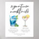 This cute signature mocktails menu poster features 2 drink drawings and their ingredients for your wedding bar or pool party. A Blue Lagoon and non-alcoholic Lemon Drop for a trendy bar menu with your customized event text.