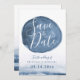 Make a unique impression with this eye-catching Save the Date card. It features a watercolor styled blue stained spot towards the center with the phrase save the date within it. Underneath this blue stain is a spot for your unique details in dark navy.