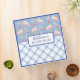 This lovely binder features a lattice work pattern in blue and white on the bottom and a pastel pink and mauve rose floral pattern on the top against a blue background. It's personalized on the front and the side so you can find it quickly on your kitchen shelf. But why put it away? It's so pretty, you can display it right on your kitchen counter! Great wedding shower or birthday gift!
