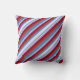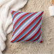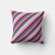 This throw pillow design features a pattern of stripes having colors like blue, lavender, hot pink, maroon, and red.