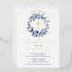 Beautiful Gold Foil Baptism invitations featuring a soft blue leaf wreath and cross set on a white background. Flip our invitation over to view a coordinating back for an extra special touch. Visit our shop to view our entire leaf collection.