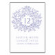 Circling leaf design monogram wedding table numbers. Add your own table numbers on by one, name and wedding date in blue purple on a white background. Other colors and matching wedding items available. © Original leaf drawing and design by Sarah Trett for www.mylittleedenweddings.com on zazzle.