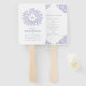 blue leaf monogram art wedding program hand fan