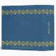 Elegant image of blue faux leather with gold tones border frame. Very flexible design where you can position frame as you need for your custom information.