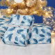 This elegant wrapping paper features a sophisticated pattern of delicate white flowers and intricate blue leaves, set against a light blue background. The design combines a modern aesthetic with a natural theme, creating a striking contrast that adds a touch of refinement to any gift. Perfect for weddings, birthdays, anniversaries, or special events, this wrapping paper exudes timeless beauty and versatility, making it suitable for both casual and formal occasions.