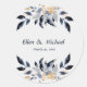 Blue Leaves with Gold Wedding Classic Round Sticker