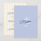 A refined blue wedding menu card featuring a soft minimal layout with citrus-inspired details. The combination of clean typography and delicate illustration creates a fresh Mediterranean look, perfect for summer weddings and destination celebrations.