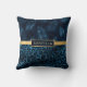 Blue Leopard Print Shimmer Tropical Floral Name Throw Pillow