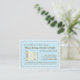 A charming poem requests that guests bring a book for the baby-to-be to start the new mom off with a library of beloved children's books. Just insert this sweet card inside the baby shower envelope. The adorable baby blue, yellow and mint color scheme with a cute little row of matching books makes a perfect design to coordinate with just about any baby shower invitation for a boy.