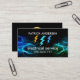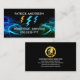 A blue electrical current streaks across the card's face and lights up your business name and contact details. At the top, over the array of electrical lightnings stand your prestigious name,