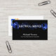 In the dark of the night, a luminous blue electrical lightning pulse streaks across the card's space, highlighting your business name "ELECTRICAL SERVICE" which you can change. At the base lies your prestigious name and slogan caption option.