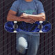 Blue Lightning Strike Skateboard with black background and extraordinary effect.