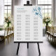Help guests find their seats with this artistic seating chart featuring blue lily outlines on a white background adding to your modern and elegant theme.