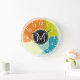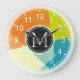 Blue Lime Orange Mosaic Modern Monogram Large Clock