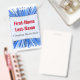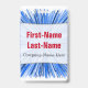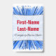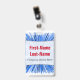 This badge design features a pattern with lines colored various shades of blue bursting out from a central point. It also features a custom name in red colored text within a white light area. There is also a customizable message under the name that could show information such as a job title, or a profession, or a business/company name. [~Z0000176]