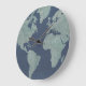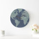 Blue Linen World Map Large Clock