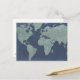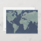 Blue Linen World Map Postcard