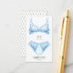 Lingerie insert card featuring feminine bra and panties in frilly blue. Customize with the bride's undergarment measurements. Great to enclose with bachelorette party invitations to ask the girls to bring the bride something special for the honeymoon.
