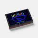 For your Chanukkah party. Features a lion-themed Chanukkah menorah, superimposed on a starry background, with all eight candles and the shamash burning. Customizable text reading, "Happy Chanukkah" also apears. Chanukkah is the mid-winter "Festival of Lights."