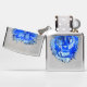 a decorative design of a big male lion in surreal blue colors on a custom zippo lighter