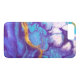 Abstract fluid art with a color palette of deep purples, blues, and turquoise, accented with gold and white marbling, reminiscent of watercolor techniques, with a smooth texture and a glossy finish.