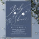 SilverFoil baby shower invitation featuring a modern script set on a blue background.