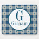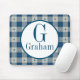 Blue Lodge Plaid Monogram Personalized Mouse Pad