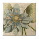 Blue Lotus Flower on Tan Background with Writing Ceramic Tile