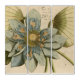 Blue Lotus Flower on Tan Background with Writing Triptych