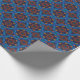 Wrapping paper which features a repeating pattern of lotus flowers in blue, red, and yellow.
