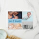 The Customizable Love and Thanks Photo Collage Baby Boy Shower and Birth Announcement Thank You Card is a special and heartfelt way to express your gratitude and share the joy of your new baby's arrival. This product combines the charm of a traditional thank you card with the personal touch of a photo collage. Featuring blue hue colors and grey blocks.
