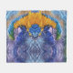 Closeup of blue macaw parrot head and reflection on patterned artsy background