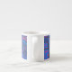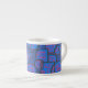 A stylish Espresso Coffee Mug with an electric blue and magenta abstract pattern, from a silkscreen print by Judy Adamson.