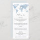 This dinner menu features an editable location, blue watercolor map and an elegant font combination. It's perfect for any travel, adventure, or destination themed event.