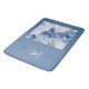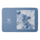 An accent bath mat in dark blue, white and light blue marble liquid ink colors. The design is a dreamy romantic and elegant design with gold and silver traces like the coastal sea breeze shimmers. It looks like an abstract marmor stone texture and fluid lava at the same time. This design fits perfect in coastal homes and makes the breeze come into your room.