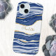 Blue Marble Agate Gold Glitter Personalized iPhone 15 Case