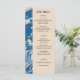 This menu beautifully captures the essence of a coastal, beach-themed wedding. The hand-painted blue marbled background mirrors the calming appearance of ocean waves, creating a tranquil atmosphere. Combined with a minimalist color palette, it adds a stylish modern touch.