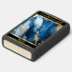 This captivating artwork showcases a stunning blend of deep blue and vibrant aqua tones, intertwined with shimmering golden veins. The fluid patterns create a sense of movement, evoking the beauty of a tranquil ocean. MONOGRAM quote and add your name