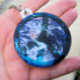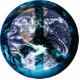 Digital creation of a blue-green peace symbol superimposed on planet Earth.