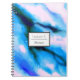 Spiral notebook with a cool background image of a cosmic looking watercolor design. Blue, pink and purple mix and mingle to create an abstract funky marbled outer space pattern. Add your name and subject title.