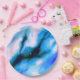 Paper plates with a cool background image of a cosmic looking watercolor design. Blue, pink and purple mix and mingle to create an abstract funky marbled outer space pattern.