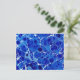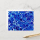 Blue Marbled postcard: this beautiful colorful design is an example of vintage marbled paper reimagined and revitalized. Blue and white colors splash across the lovely design in random shades and sizes like water and sea foam. Paper marbling is an ancient method of aqueous surface design, which can produce patterns similar to smooth marble or other stone. The patterns are the result of color floated on either plain water or a viscous solution known as size, and then carefully transferred to an absorbent surface, such as paper or fabric. Through several centuries, people have applied marbled materials to a variety of surfaces. It is often employed as a writing surface for calligraphy, and especially book covers and endpapers in bookbinding and stationery. Part of its appeal is that each print is a unique monotype that is extremely pleasing to the eye.