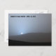 Sunset on Mars as photographed by NASA's Curiosity rover. Sundown in Gale Crater on the 956th day, or sol (April 15, 2015), of the Curiosity mission. Customizable text reading "SUNSET AT GALE CRATER -APRIL 15, 2015" also appears. When the photograph was taken there was much very fine dust in the atmosphere. Normal daylight conditions enhance the reddish, rusty color of the dust. However, light conditions at sunset make the sky look more blue. Image credit: NASA/JPL-Caltech/MSSS/Texas A&M University.
